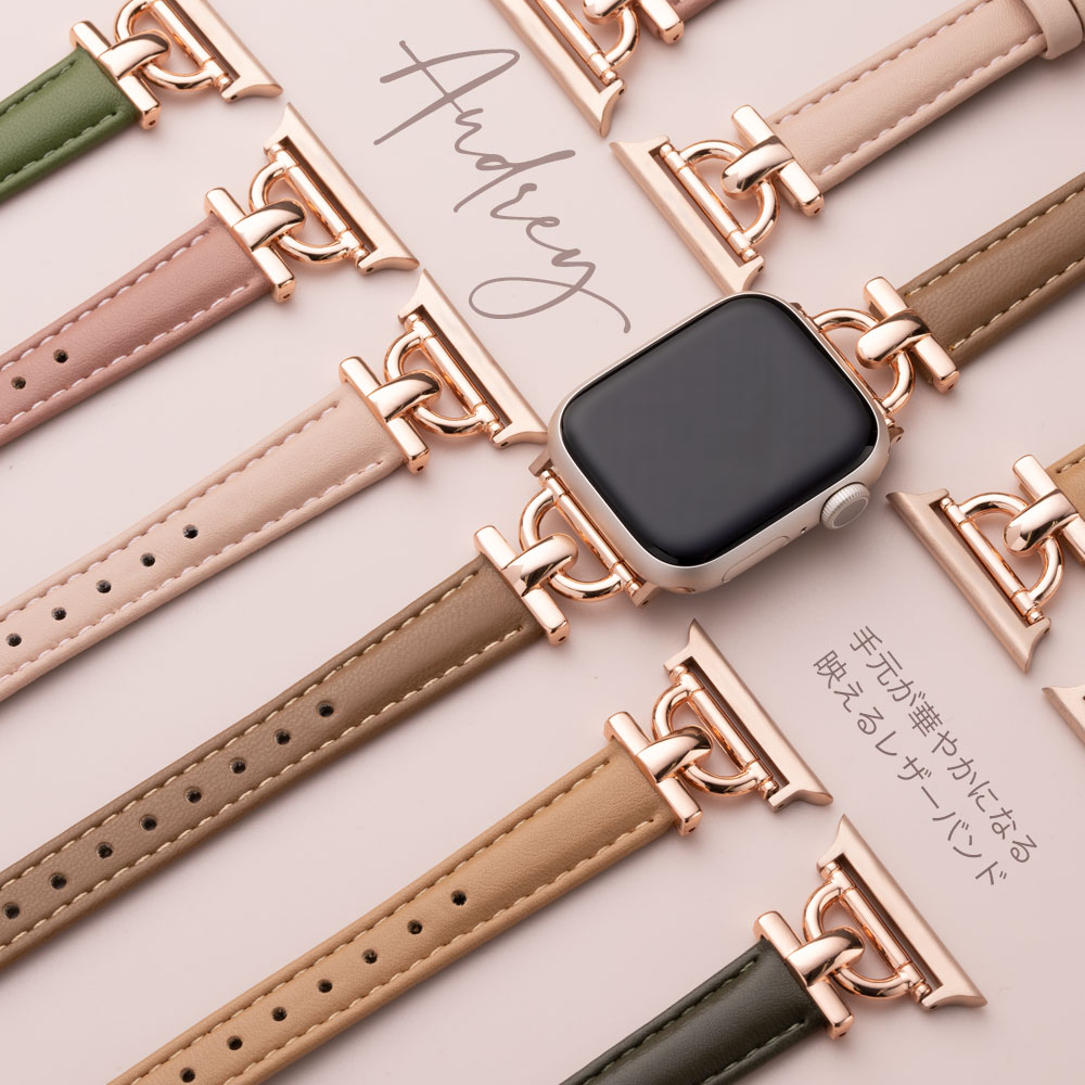 大人可愛いくすみカラーの細みえレザーを使用した上品な大人女子向けのお洒落なアップルウォッチバンド。